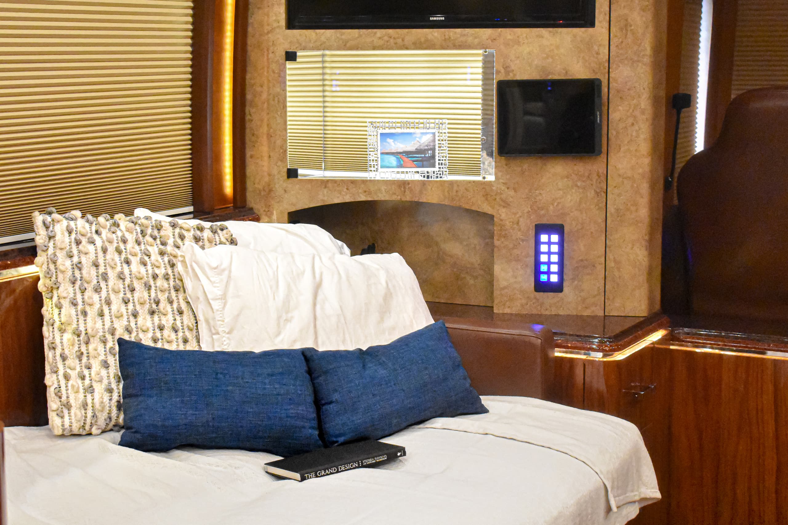 Relax inside in one of the two leather recliners or on the premium leather couch by one of the four incredible TVs or outside under the shady awning by the outdoor entertainment center. Be entertained every step of your journey through the In-Motion Satellite system, allowing you to watch your favorite channels anywhere, even when on the road.
