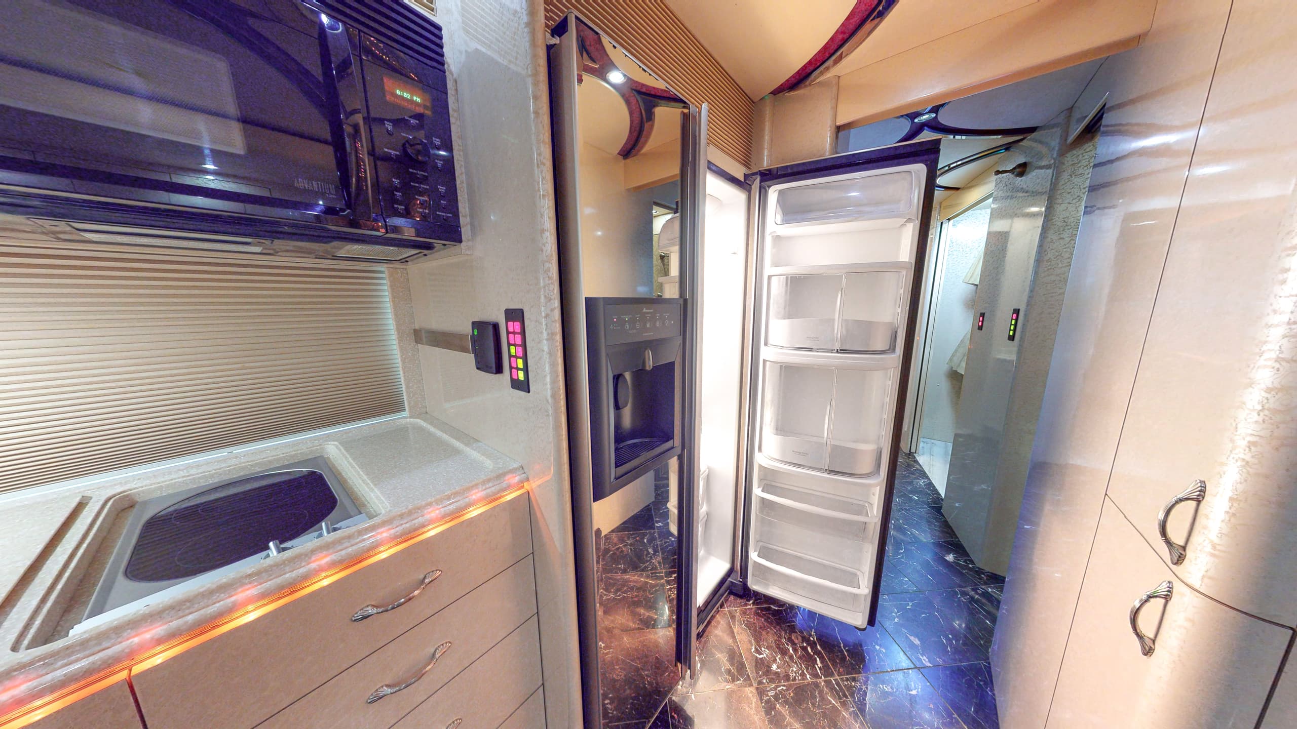 Classic luxury for the adventure of a lifetime! Let this Prevost Marathon 896 welcome you into a masterfully made coach that is able to sleep 6 people comfortably through the king sized bed, double bunk beds and premium leather futon style sofa. This coach also sports a spacious full bath in the galley, stacked washer and dryer, sub-zero refrigerator, expanding dinette, induction cook top, and convection microwave oven.